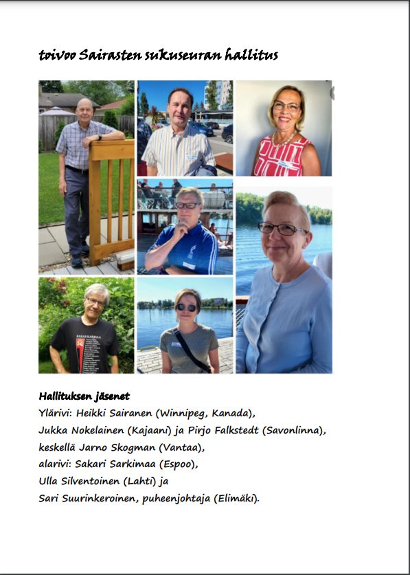 Tietoa Sairasten suvusta ja sukuseuran toiminnasta