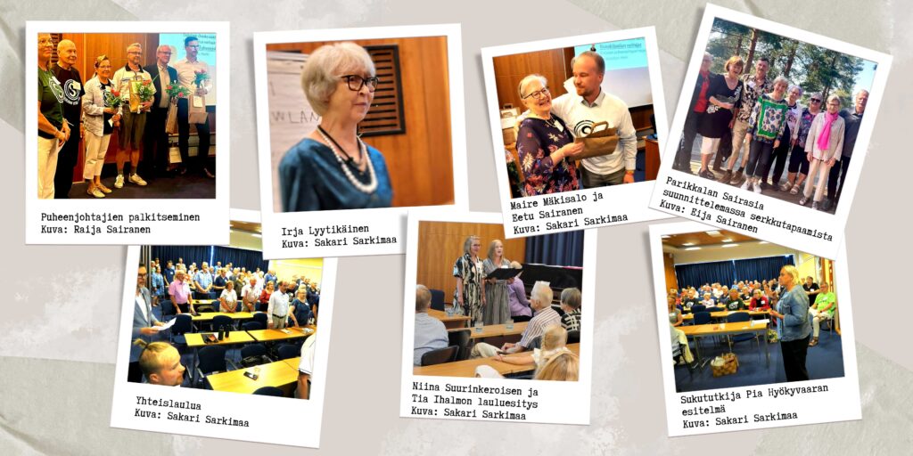 Sairasten sukuseura juhli 30-vuotista toimintaansa Imatran kylpylässä 9.8.2025. Juhlapuhuja vertaili tekoälyä ja sukua toisiinsa: mummo ja ukki vievät voiton tekoälystä 6-0.